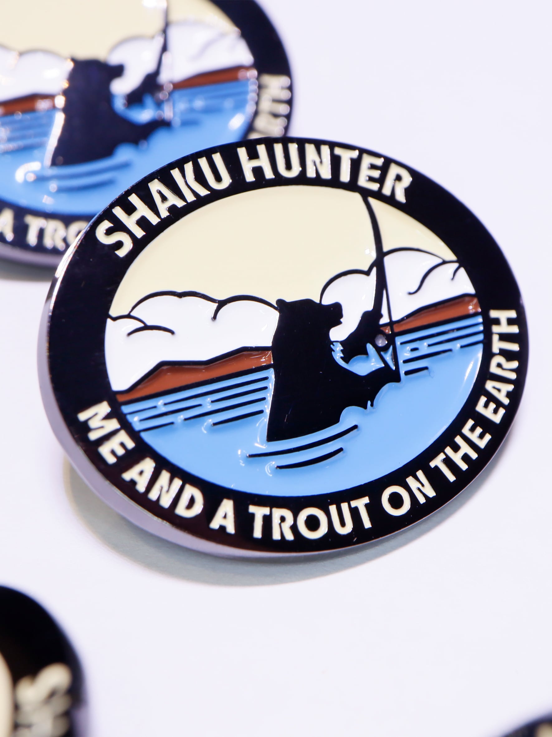 シャクハンのシンボル「CASTING BEAR」のピンズ。 ベストやキャップにつけるのも◎ サイズ:30mm-25mm